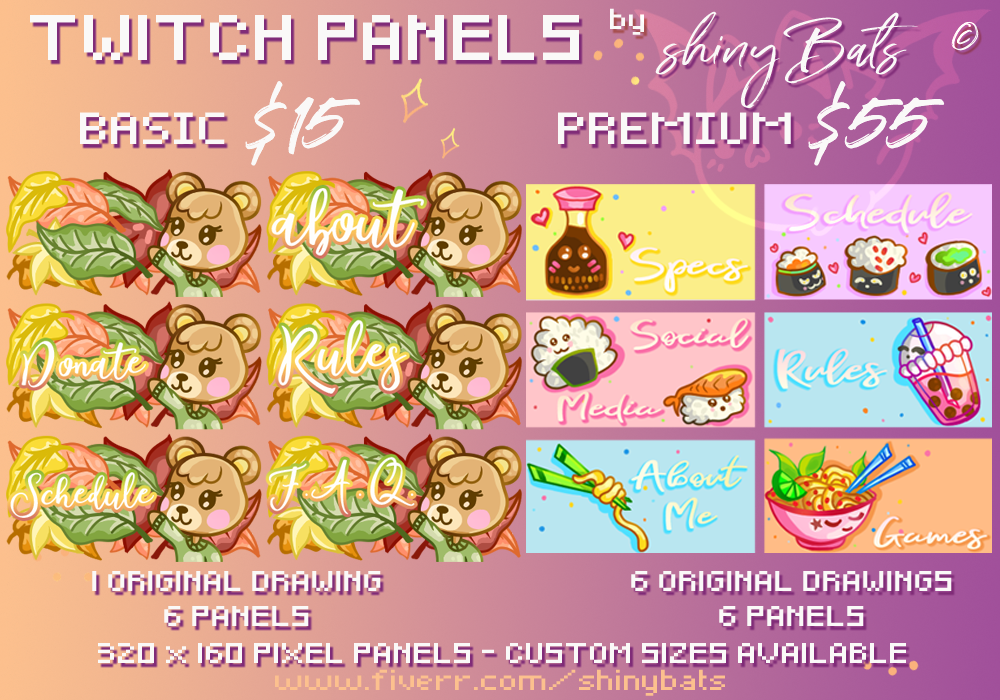 More panels, extra drawings, matching emotes and special size panels are also available! For details, please see my listing here.